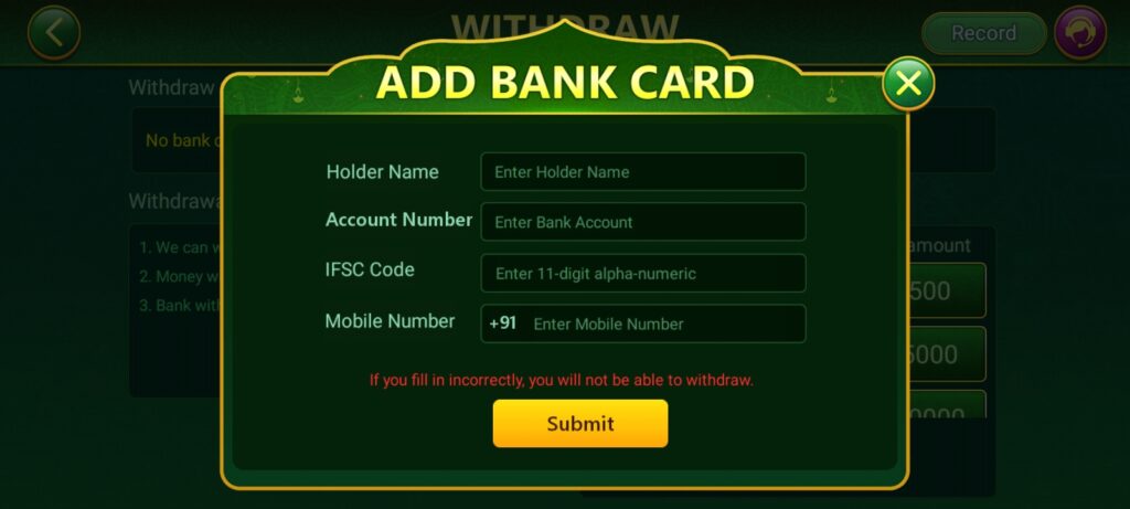- Withdraw ke option par click karne ke baad apko Add Bank card par click karna hota hai.